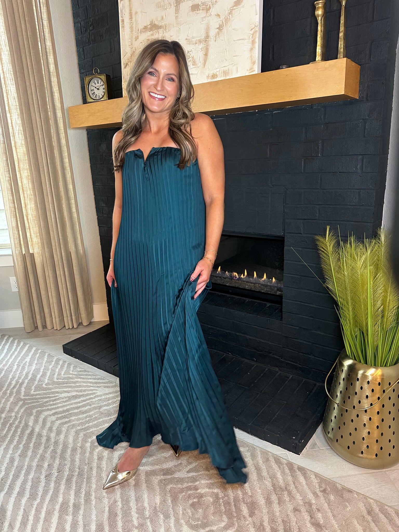 Dive into elegance with the Sea Glass Maxi, a stunning turquoise pleated dress that steals the show at weddings and formal events. Featuring a structured strapless neckline that flatters every frame, this lightweight beauty moves with you throughout the night. The timeless design pairs comfort with sophistication—because looking fabulous shouldn't mean sacrificing how you feel. Slip it on and let the compliments flow.